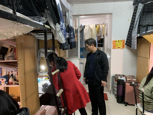 走访前,曾玉华书记强调,一定要学生干部们要明确任务,分工合作,重点检查寝室安全和卫生问题;对于检查过程中发现的问题要立即指出并督促同学们及时整改;在检查过程中要注意文明礼仪和方式方法。随后,学院老师们分组带领学生干部一一进行了卫生检查和安全隐患排查,亲切地了解了同学们的生活和学习情况,并同正在寝室进行自习的同学们交流专业课学习方法。本次检查走访提升了同学们对寝室卫生和安全的重视程度,同时也对存在问题的寝室提出了整改意见并监督改正。