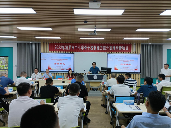 接着,学员代表李国玉发言,他代表参训学员郑重承诺,培训期间一定会满怀激情地投入到学习中,好好珍惜这次机会,把本次学习当成一次自我革新、提能增质的研修之旅,严格遵守纪律,潜心学习,深入研讨,认真反思,要把学习的收获带回汨罗、带回学校、带进课堂,为推动新时代汨罗素质教育高质量发展做出应有的贡献。