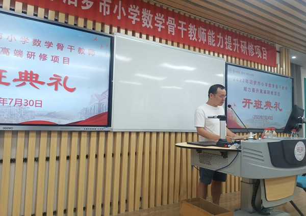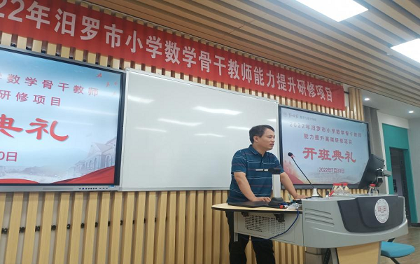 开班仪式上,汨罗市正则学校蔡立新老师做代表发言,在深表感谢的同时,号召学员严格遵守培训纪律,专⼼听好每场讲座,做好学习笔记;主动参与讨论,积极研讨交流,互帮互助;认真完成作业,撰写研修⼼得,⽤⼼感悟,潜⼼研究;同学之间团结协作,博采众长,⼒求共同成长。