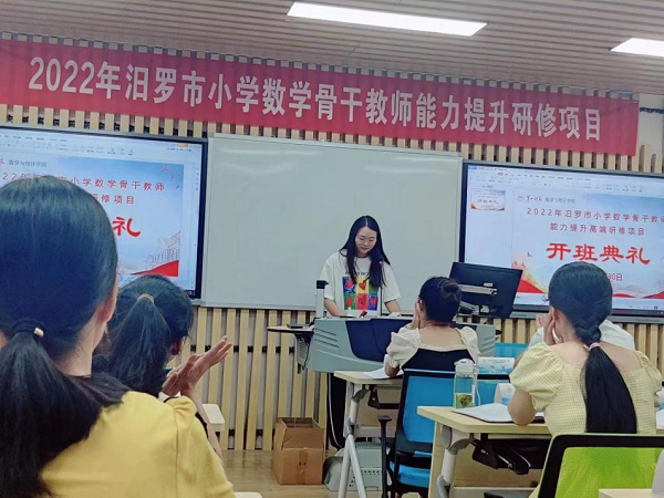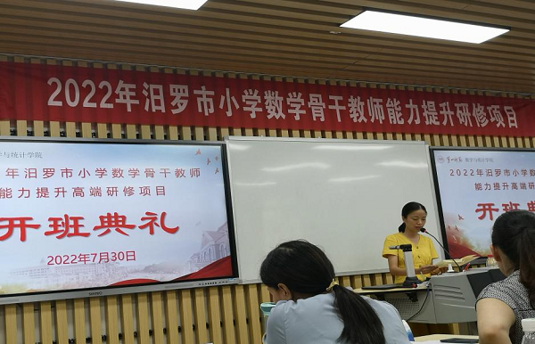 绿树阴浓夏日长,研修路上尽书香。7月30日,2022年汨罗市小学数学骨干教师能力提升研修项目开班典礼在湖南第一师范学院特立楼北栋103室隆重举行。此次研修项目由湖南第一师范学院久久高清内射无套承办。来自汨罗市各学校的40名小学数学骨干教师即将参加为期10天的培训,共赴一场教育盛宴。此次典礼由项目班主任王春利主持。