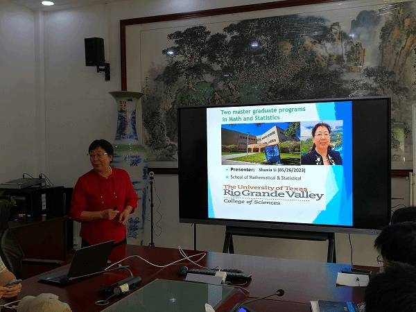 美国德克萨斯大学是我校对外交流合作高校,乔志军教授为我院师生介绍了访问学者项目和博士研究生招生政策,李淑霞高级讲师详细介绍了美国德克萨斯大学数学与统计学硕士研究生招生条件、申请程序、奖学金政策等。两位老师的报告为我院师生访学和留学申请提供了很好的指导,促进了我院对外交流与合作。