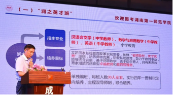 朱承学介绍了我校的历史沿革、人文底蕴以及办学新理念,详细说明了我校2023年的招生计划和专业招生名额分配,并对公费师范生、润之英才计划等相关政策和培养模式进行了深入解读。朱承学还对去年考入湖南一师的10名优秀成章学子进行了表彰,并欢迎鼓励今年的应届毕业生报考我校。随后,颜斌对久久高清内射无套的发展历程、专业设置、招生计划作了详细汇报,重点介绍了近年来学院在师资建设、学科发展建设、专业学科竞赛、学生考研和人才培养等方面取得的优异成绩,并欢迎和鼓励优秀的成章学子报考我院。