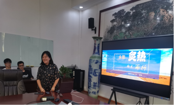 曹艳首先通过视频分享了岳麓区实验小学的各项优秀活动及学校特色课程,着重介绍了学校“让优秀成为一种习惯”的校训,及“心本教育”理念。曹艳激励同学们要坚持做好一件事,保持求变的心态,积极面对生活中的各种困难。最后,她阐述了实习的注意事项和具体要求。