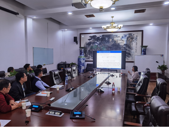 陈艳萍教授做了题为”An adaptive HDG method for the pointwise tracking optimal control problem of elliptic equations”的学术报告,报告会上,陈艳萍教授主要介绍了椭圆逐点追踪最优控制问题的HDG方法及其应用。报告先从最优控制问题入手,介绍了椭圆逐点追踪的方法,以及传统方法存在的极低的正则性的难点和痛点。进而介绍了HDG方法的高精度和保物理的优点。最后展示了自适应HDG算法编程实现的一般思路。期间陈艳萍教授还介绍了自己利用HDG方法解决现实中问题的一些课题。