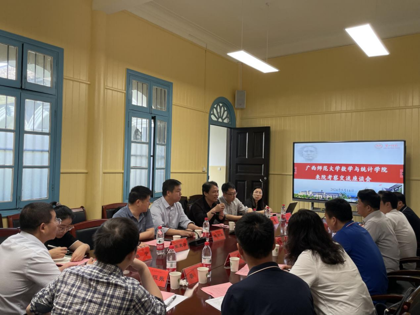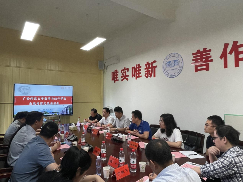 会议伊始,曾玉华发表了热情洋溢的欢迎辞,对广西师范大学数统院代表团的到来表示热烈欢迎并简单介绍了我校的历史沿革和发展现状。随后,陈爱永详细介绍了学院的基本情况,以及学科建设、专业建设、人才培养和未来发展规划等。