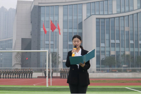 伴随着激昂乐章,国旗护卫队步伐铿锵,昂首挺胸地走向升旗台。在国歌的庄严旋律中,鲜艳的五星红旗在晨光中缓缓升起,全体师生肃穆站立,向国旗致以崇高的敬意,内心涌动着对祖国的深情厚意和无比的自豪感。