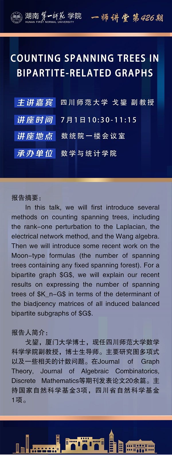 学术报告|数学高峰讲坛第66期:Counting spanning trees in bipartite-related graphs