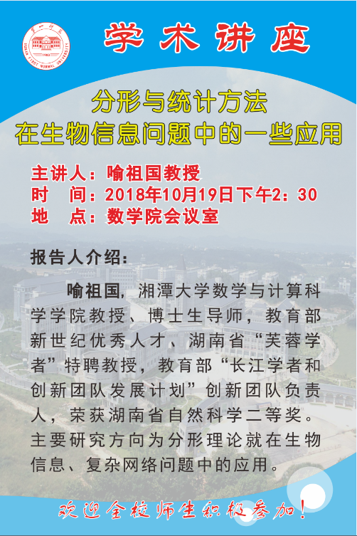 10月19日湘潭大学喻祖国教授到我校讲学