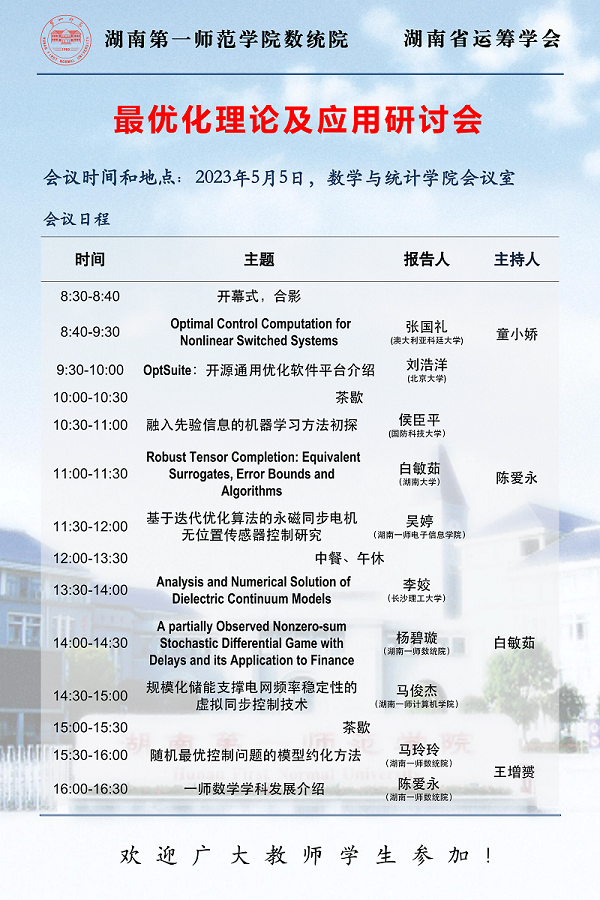 学术研讨会|2023年最优化理论及应用研讨会