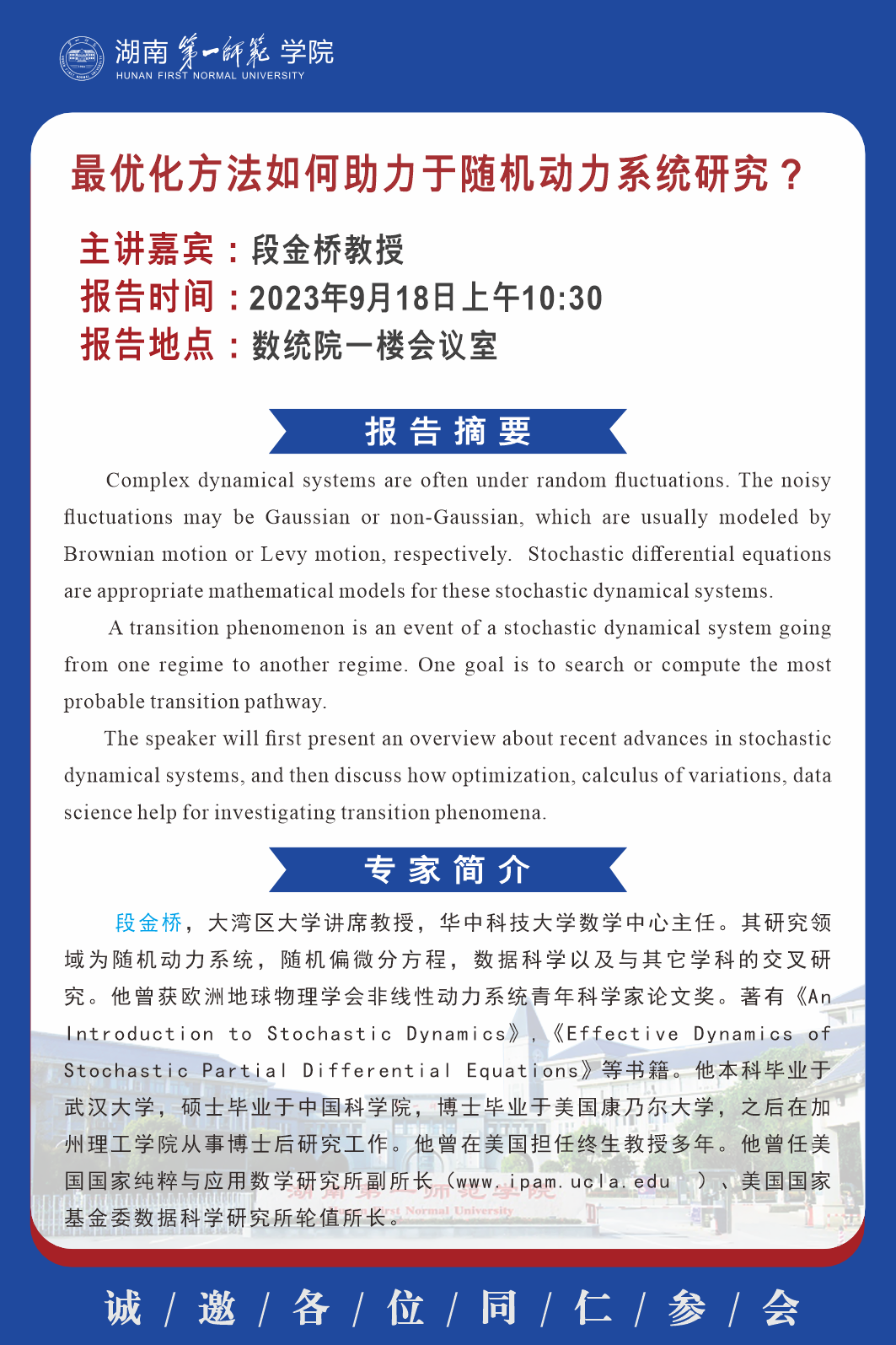 学术报告|数学高峰讲坛第20期:最优化方法如何助力于随机动力系统研究?