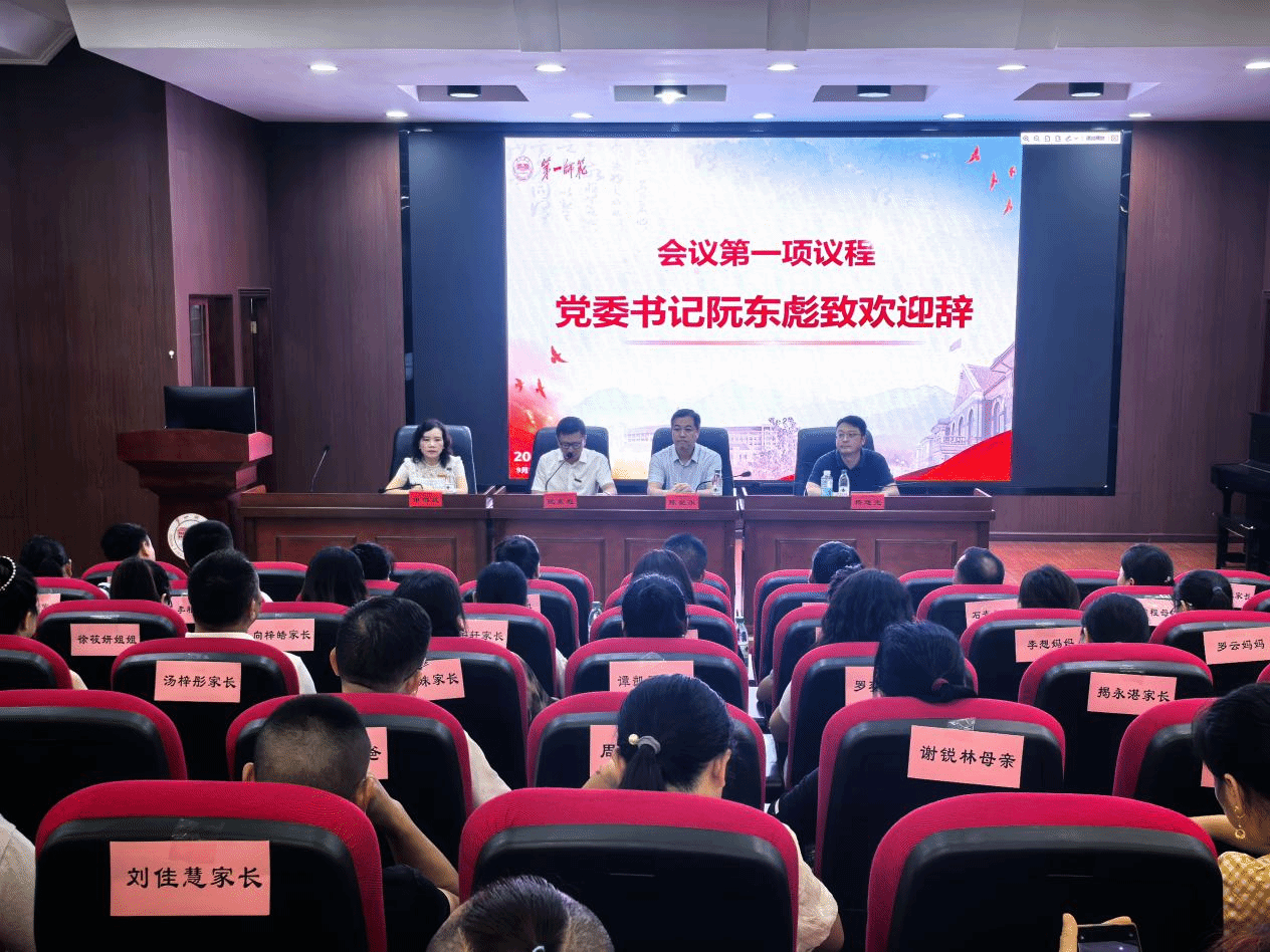 阮东彪致欢迎辞,代表学院向2025级新生及家长表示热烈欢迎。他以学校深厚的办学底蕴为切入点,勉励新生在湖南第一师范学院这片育人沃土上,深刻体悟“要做人民的先生,先做人民的学生”的校训精神,树立远大志向,锤炼扎实学风。他强调,我们要学习贯彻好习近平总书记考察我校重要讲话精神,要教育引导我们的孩子传承红色基因,立报国强国大志向,培养更多让党放心、爱国奉献、担当民族复兴重任的栋梁之才。