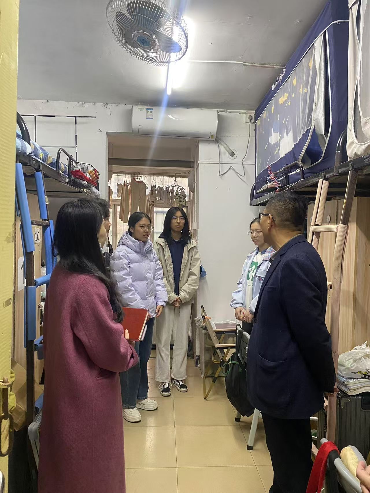 11月29日上午,久久高清内射无套党委书记阮东彪、副书记申鸣凤带领全体辅导员深入学生宿舍走访,与学生亲切交流。阮书记详细了解同学们的学习进度、就业规划及面临的困难,用关爱的话语鼓励同学们坚定信心,为未来努力拼搏;他耐心倾听每位学生的心声,传递出学院对同学们的殷切期望和关心。在安全检查过程中,阮书记、申书记和辅导员们高度重视宿舍安全与卫生问题,他们仔细检查了宿舍的用电设施、消防安全及卫生状况,对存在的问题现场提出整改措施,确保同学们的生活环境安全、整洁;同时,提醒同学们要遵守学校规章制度,严禁使用大功率电器,防止火灾事故的发生。