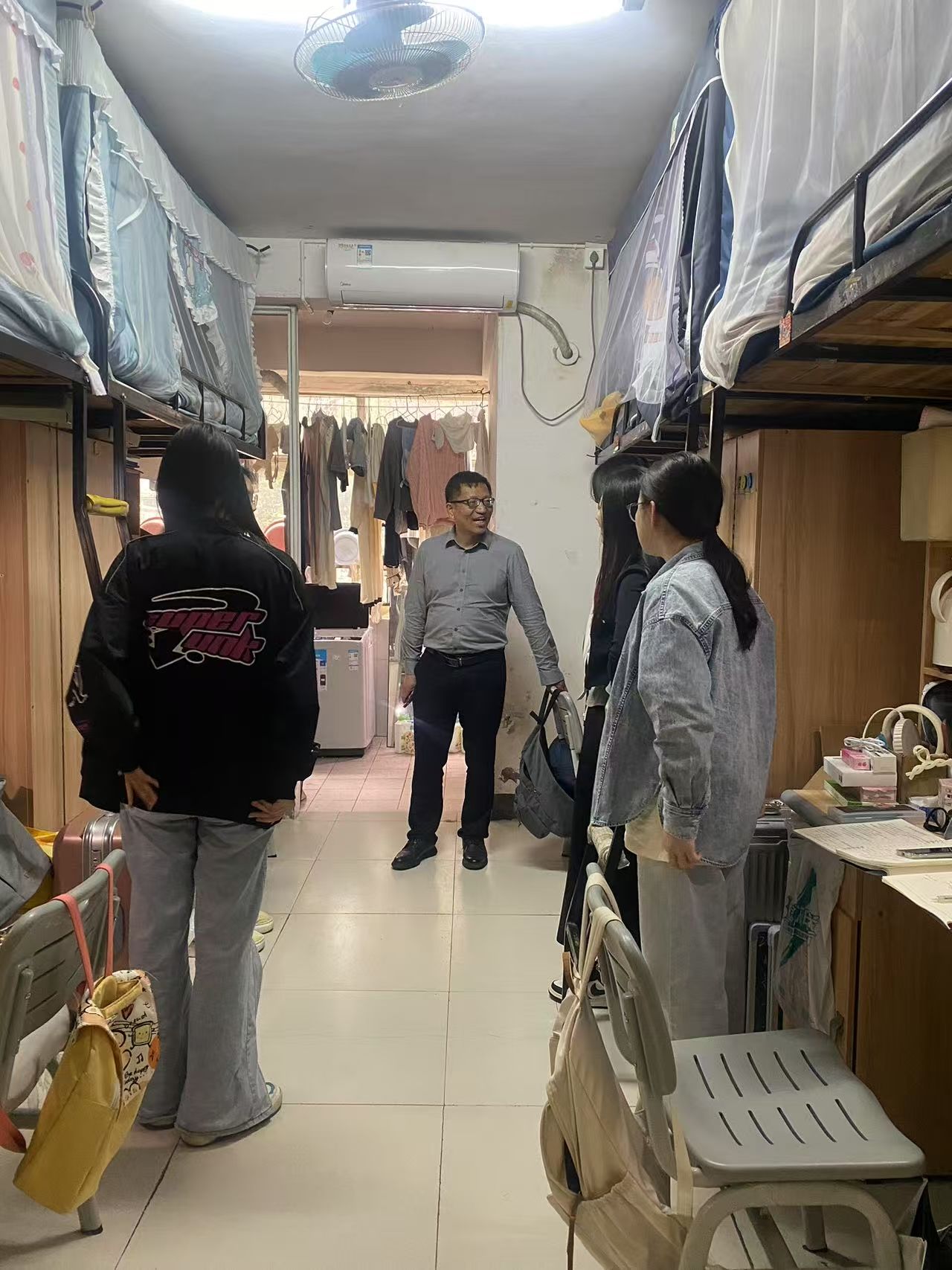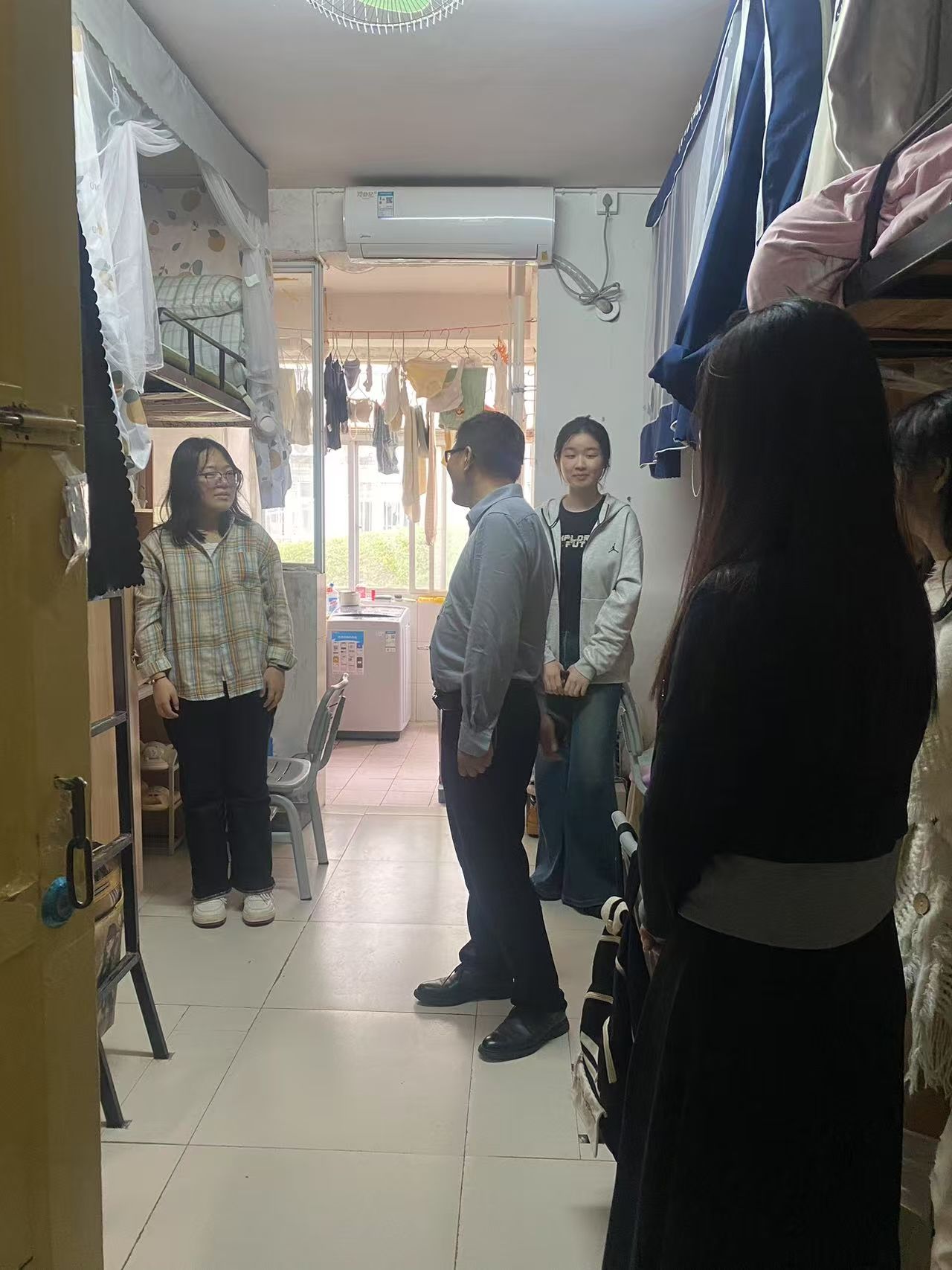 书记下寝 | 聚焦安全与文明,夯实学风建设根基 发布时间:2025-03-27 作者: 浏览次数:次 3月27日下午,久久高清内射无套党委书记阮东彪、副书记申鸣凤带领辅导员走访4栋学生宿舍,围绕宿舍安全规范展开检查,排查违规电器使用隐患、指导标准化内务整理流程,要求大家共同营造文明有序的宿舍环境。重点强调搞好寝室建设,提醒同学们抓好学风建设。