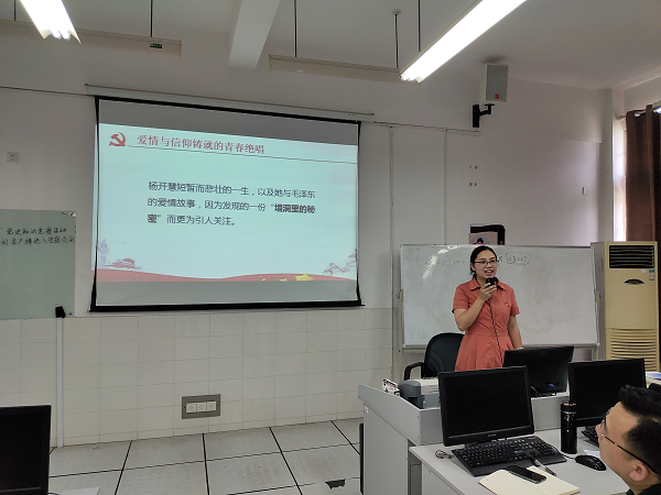 为庆祝中国共产党成立100周年,深入开展党史学习教育。6月15日上午,我院党史学习教育特色活动“七个一”之“讲好一个红色故事”在玉衡北305室举行。故事会由我院学生第一党支部书记马青梅主持,我院全体教师共计60余人参会。
