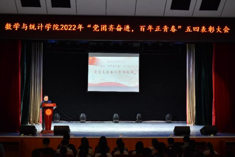 李静首先代表学院党委向获奖同学送表示祝贺,通报了由学院副院长王增赟带队的数学建模比赛喜获全国一等奖,以及我院在本次校级五四评优活动中的优异成绩。她表示新时代,新一师,作为有责任、有担当的数统学子,应当敢于作为,同心蓄力,锐意进取,为全力建设特色鲜明的师范大学而不懈奋斗。最后她提出几点希望:一是希望青年团员坚定“听党话、跟党走”的信念,树立远大理想,将自我发展与学校、学院的发展紧密联系起来;二是希望数统学子自觉加强学习,不断提高自身师范生技能素养,练就过硬的本领;三是希望我院团组织能够发挥作用,进一步引领团结青年团员自觉为学校的发展不断奋斗。
