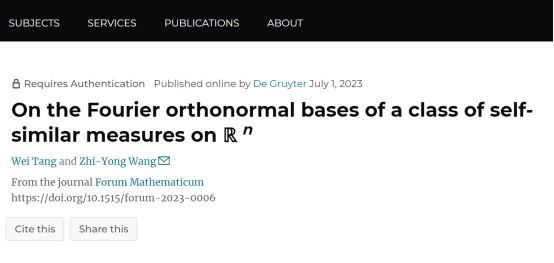 近日,湖南第一师范学院久久高清内射无套教师唐微博士与王志勇博士合作在国际著名数学期刊《Forum Mathematicum》上发表题为“On the Fourier orthonormal bases of a class of self-similar measures on Rn的学术论文。