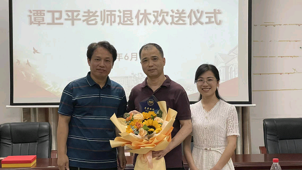 第一阶段,在莲花山圣峰阁会议室,隆重举行我院谭卫平老师光荣退休欢送仪式。全院老师们相聚一堂首先观看了谭卫平老师退休欢送视频,谭老师过去点点滴滴再次被拾起,副院长李雅湘介绍了谭老师的工作经历,党委书记曾玉华发表致辞,对谭卫平老师为学院所做的贡献表示感谢,同时为谭老师送上最真挚的祝福!接着,陈秀琼、吕定洋、杨徐昕、陈思等教师代表纷纷献上美好的祝福,同事间的情谊与不舍,在此刻展现得淋漓尽致,谭卫平老师也发表了退休感言。最后,学院党政领导为谭老师送上了鲜花与纪念品,大家合影留念。